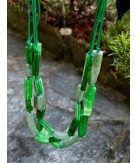 Collier multi rangs composé de perles rectangulaires dans des dégradés de Verts brillants.